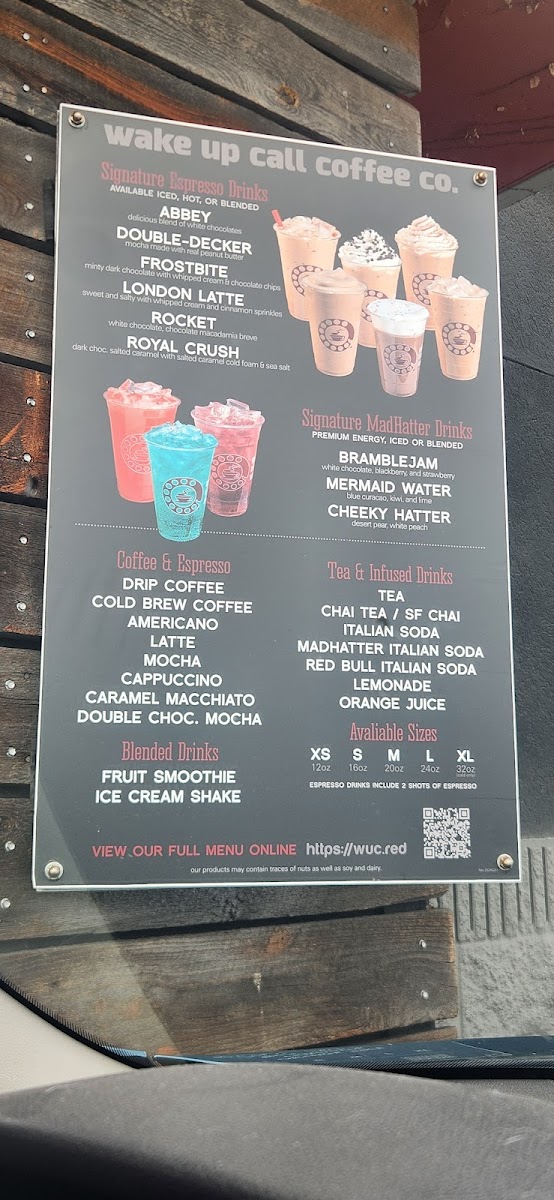Introducing the menu at Wake Up Call - Northwest Blvd, a delightful haven located at 1621 W Northwest Blvd, Spokane, WA. Renowned for its exceptional espresso drinks, the menu boasts signature creations like the Double Decker Mocha, marrying rich chocolates and peanut butter, and the festive Frostbite Espresso, topped with whipped cream and mini chocolate chips. For those craving a burst of energy, the Bramblejam MadHatter offers a refreshing mix of white chocolate and berry flavors.